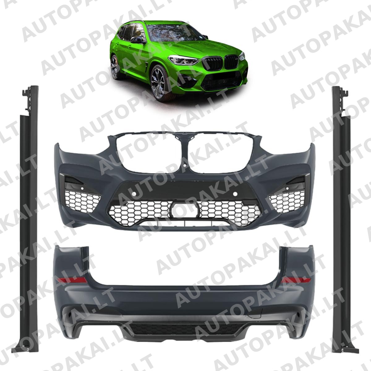 | Without ACC, With holes for PDC front and rear, Without Lamp Hole, With Park Assist | PP Plastic | Unpainted | X3M | Front;Rear;Side | - | SUV |