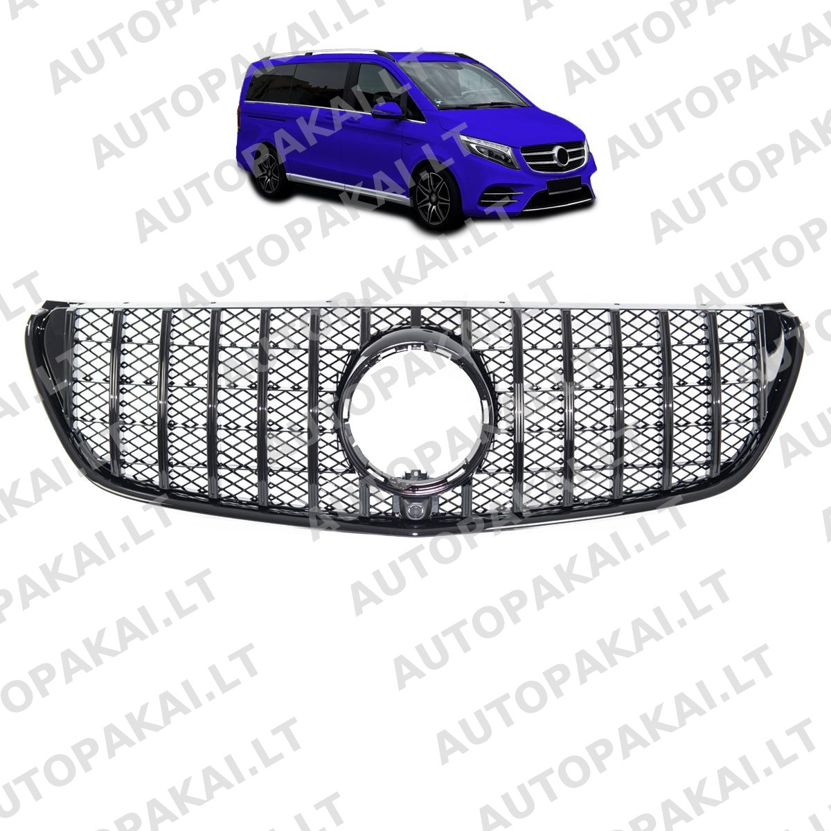 Grotelės GT blizgios juodos spalvos, skirtos MERCEDES V klasei (W447) prieš feisliftą 2014–2019 m.