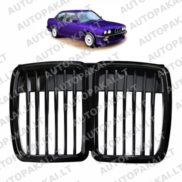 Grille Single Line Gloss Black for BMW 3 (E30) Sedan Touring Convertible 87-94